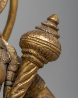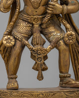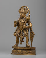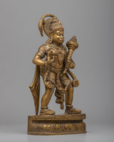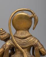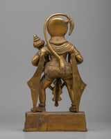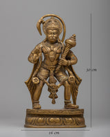 The Hanuman Ji Statue, which is 30 cm tall and represents the power, loyalty, and devotion of Lord Hanuman, a revered figure in Hindu mythology, is crafted by hand from brass with attention and care. It evokes awe and devotion with its exquisite detailing and superb craftsmanship that perfectly depict the essence of Hanuman's celestial presence.