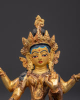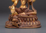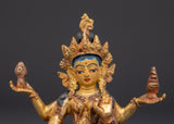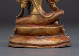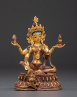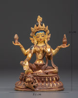 This Hindu Wealth Deity Laxmi Figurine is a revered portrayal of Goddess Lakshmi, the popular Hindu deity of fortune, prosperity, and abundance. This masterfully created statue is 11cm tall, 8.5cm wide, and weighs 0.25kg. It is made of copper and has a dazzling gold-plated finish. Its little but strong size makes it excellent for home temples, meditation places, or as a meaningful gift that brings the benefits of riches and serenity.