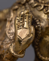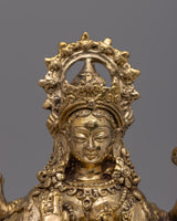 This Hindu Deity Durga statue is made on brass body, which measuring 17 cm in height, 14 cm in width, and weighs 0.90 kg. According to the Hindu calendar, Durga is particularly honored during the festival of Navaratri, when she is praised for defeating evil forces. She represents feminine strength and is revered for her bravery, strength, and protectiveness, which represent the grace and tenacity of God.