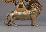 The symbolism of this Durga statue depicts her seated atop a lion, a significant symbol in Hinduism representing raw strength, courage, and fierce protection. The lion, as her vahana (mount), represents her dominion over untamed and uncontrolled elements, as well as her fearlessness and capacity to defend against all sorts of evil. Durga's numerous arms, each clutching heavenly weapons, emphasize her function as the universal protector, ready to shield her believers from negativity and harm. Durga represents feminine strength, resilience, and divine insight spiritually, and she encourages worshippers to seek her blessings for courage, moral clarity, and victory over life's problems. Her presence is a source of empowerment, bringing heavenly energy, protection, and positive change.