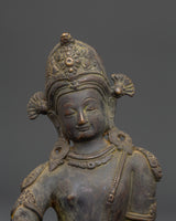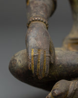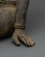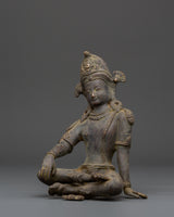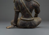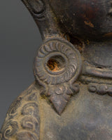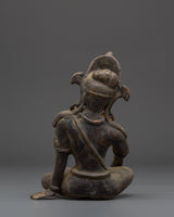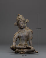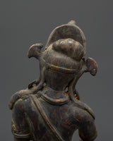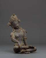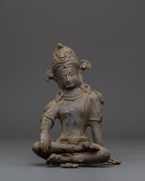 The statue’s intricate detailing reflects Indra’s commanding presence and symbolic role as a protector of dharma and a granter of blessings. In Hindu tradition, Indra is seen as the guardian of cosmic order, representing strength, prosperity, and spiritual vitality. The antique finish enhances the quality of this piece, making it both a devotional object and an artistic masterpiece. This copper Indra statue is ideal for practitioners, collectors, or anyone wishing to bring the blessings of protection, abundance, and divine energy into their sacred space.