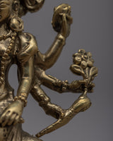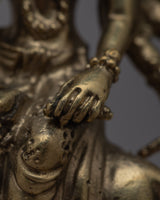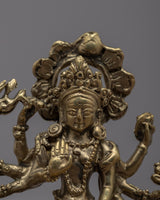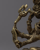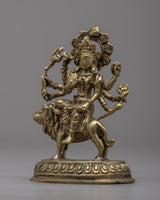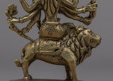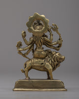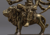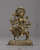 The magnificent Jai Maa Durga Statue, a true example of divine craftsmanship, is presented. The goddess Durga, the personification of divine feminine power, is depicted in this hand-crafted statue riding majestically on a lion. This statue was meticulously crafted from brass, and each element shows the skill and dedication of the craftspeople who worked on it. Maa Durga displays a sense of divine presence and grace, her multiple arms signifying her capacity to protect and nurture. This exquisite statue is a valued focal point in any religious or cultural setting because it represents strength, bravery, and divine intervention.
