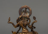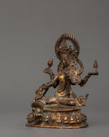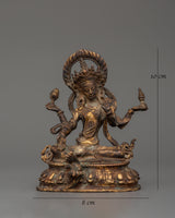 The Hindu Wealth Deity Laxmi Statue stands 10 cm tall and 8 cm wide, weighing 0.25 kg. Crafted from copper and adorned with a stunning antique finish, this statue portrays Goddess Laxmi, the cherished Hindu deity of wealth, prosperity, and good fortune. The goddess is elegantly depicted in a pose of abundance, symbolizing her divine blessings on all areas of life, especially financial well-being.