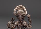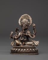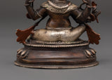 Our magnificent Lord Ganesh Blessing Statue will bring you peace, wealth, and blessings. Standing 10cm tall and weighing only 0.24kg, this handcrafted statue features fine craftsmanship on oxidized copper, enhanced with silver plating for a gorgeous and divine finish. Lord Ganesh, the remover of obstacles and the god of new beginnings, is venerated for his blessings that bring success, happiness, and spiritual progress. This exquisitely carved statue is ideal for anybody wishing to bring positive energy and wealth into their home, office, or meditation room.