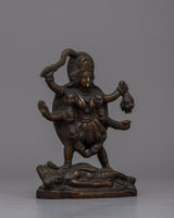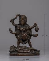 Presenting the perfectly crafted statue of the ferocious Hindu goddess Kali, the Mata Kali Statue. This magnificent statue, which weighs 1.048 kg and is 16 cm tall and 12 cm wide, is crafted from brass. The minute details depict Mata Kali in all her ferocious and dynamic glory, signifying the cycle of life and death, the destruction of evil, and the defense of the innocent.