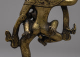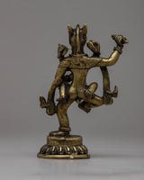 The Narasimha Bronze Statue is a remarkable representation of Lord Narasimha, the ferocious manifestation of Lord Vishnu. Handcrafted from bronze with painstaking attention to detail, this statue depicts Lord Narasimha's intensity and force as he rises from a pillar to destroy the demon Hiranyakashipu. Standing at 14cm tall, the statue depicts Lord Narasimha standing on one leg with his consort , symbolizing his ultimate victory over evil.