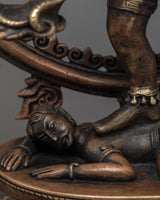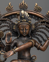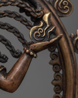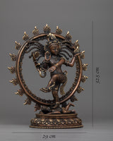 The Nataraja Statue has a majestic presence, a divine masterpiece crafted with utmost precision on a lustrous brass body. This statue, which captures the essence of Lord Shiva's cosmic dance, exudes grace and transcendence. Nataraja's dancing form comes to life with each intricately carved detail, exuding power, and elegance. The intricately designed throne behind him adds a regal touch, symbolizing his divine authority. Allow yourself to be carried away by the enchanting rhythm of this divine dance, as the Nataraja Statue transforms into a portal to realms of spirituality and artistic marvel.