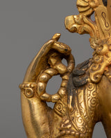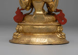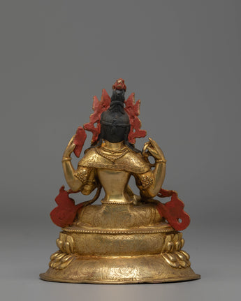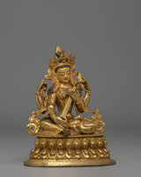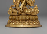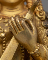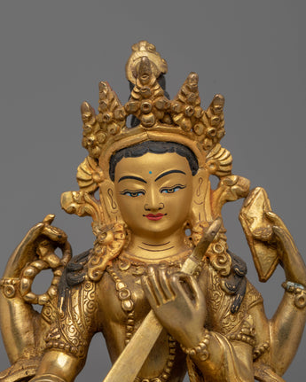 This handcrafted Saraswati Statue, measuring 16cm in height, 13cm in width, and weighing 0.9 kg, is made of a copper body with a gold-plated finish. Expertly designed by skilled artisans, it reflects traditional craftsmanship and is perfect for personal altars, meditation spaces, or as a decorative spiritual piece. This statue embodies wisdom, creativity, and learning, making it a meaningful addition to any sacred space.