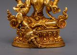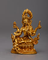 The Sitting Position Laxmi Statue, skillfully fashioned from a copper body with a gorgeous 24k gold plating, will add a touch of spiritual grace to your home. This little figurine, which stands about 6 cm tall, exquisitely depicts Goddess Laxmi in a classic stance and gives off a calm and prosperous vibe. Every detail is enhanced by the gold plating, which results in a brilliant show that brightens any environment.