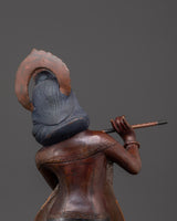 Traditional Krishna Carving Statue | Handcrafted Oxidized Copper Artwork