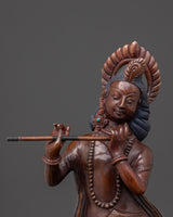 Traditional Krishna Carving Sculpture with Flute | Spiritual Home Decor Piece