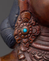 This expertly crafted Krishna statue is not only a magnificent piece of spiritual decor but also a testament to India's cultural legacy. The statue's oxidized copper surface creates a classic, vintage appearance that suits any classic or contemporary household decor. Krishna's lovely grin, the elegant placement of his hand holding the flute, and the detailed carvings on his robes and the cow alongside him all demonstrate the artist's great skill. The statue's weight of 5.78 kg provides a sense of firmness and significance, making it a powerful addition to your home.