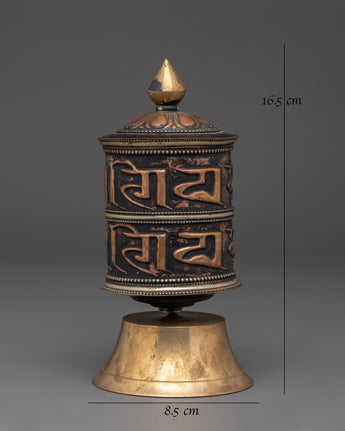 Brass & Copper Prayer Wheel | Tibetan Buddhist Mantra Wheel for Meditation