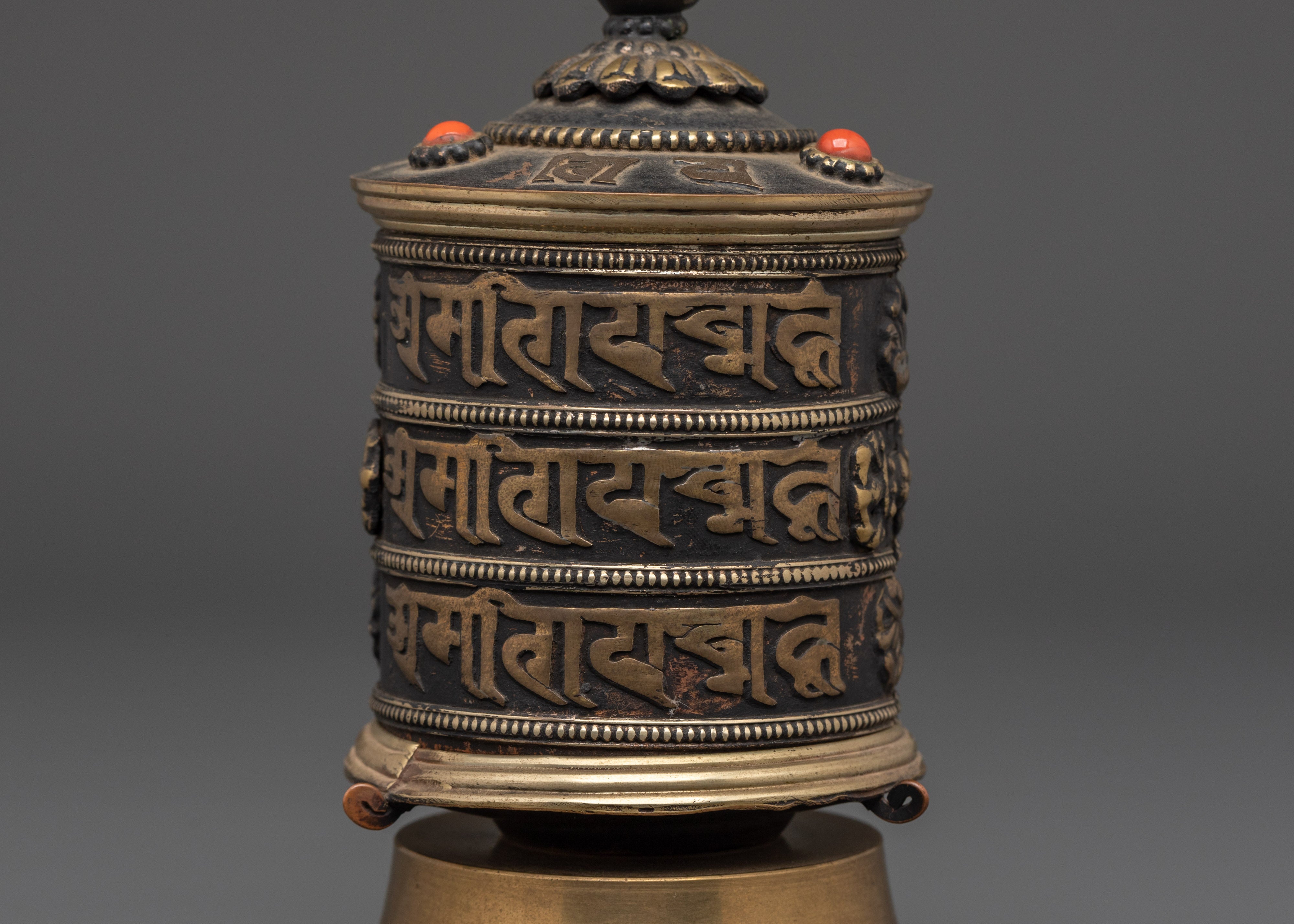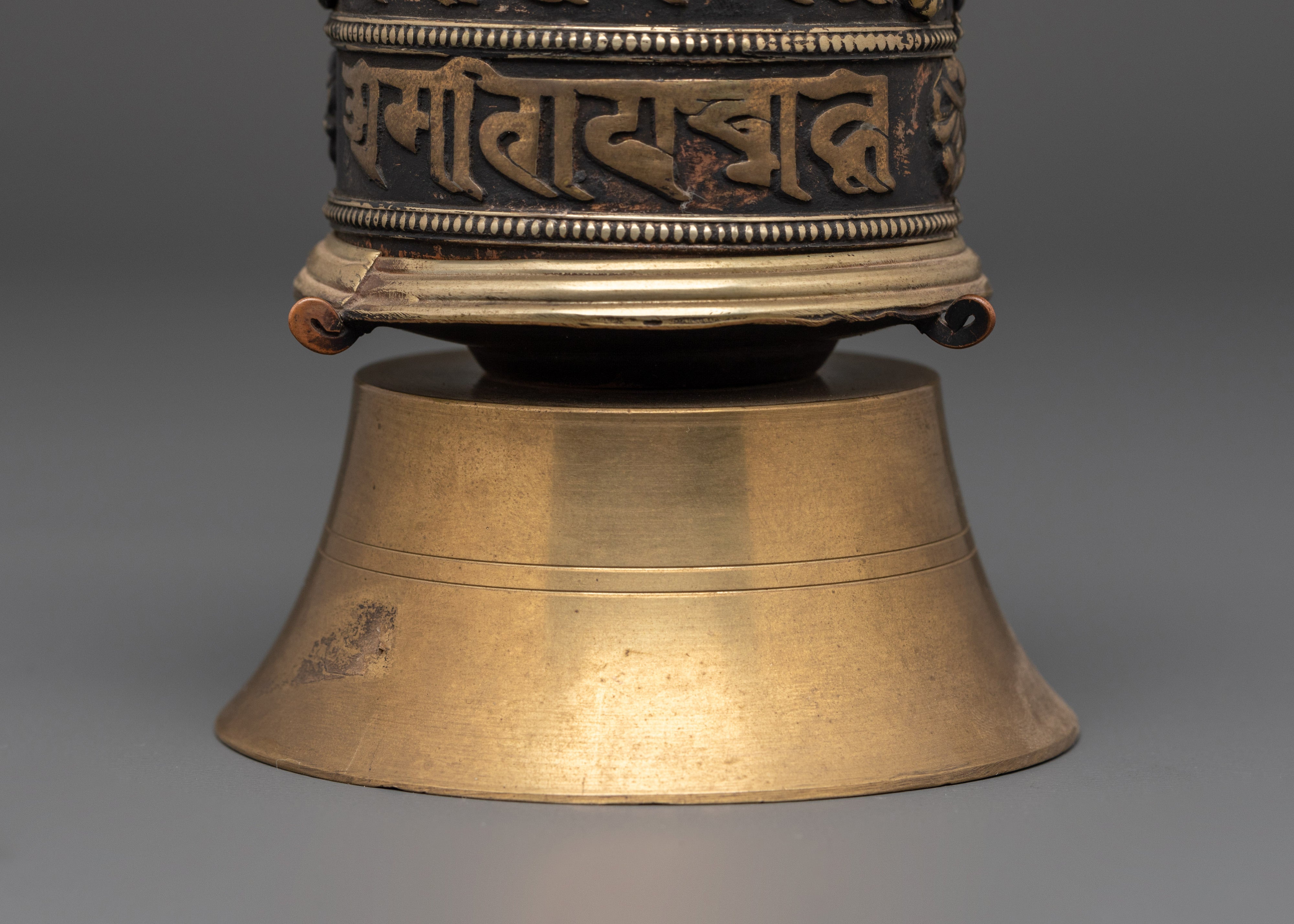 Buddhist Mantra Spinning Wheel | Brass & Copper Tibetan Prayer Wheel