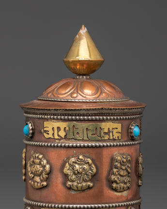 Buddhist Prayer Wheel for Meditation | Brass & Copper Tibetan Mantra Wheel