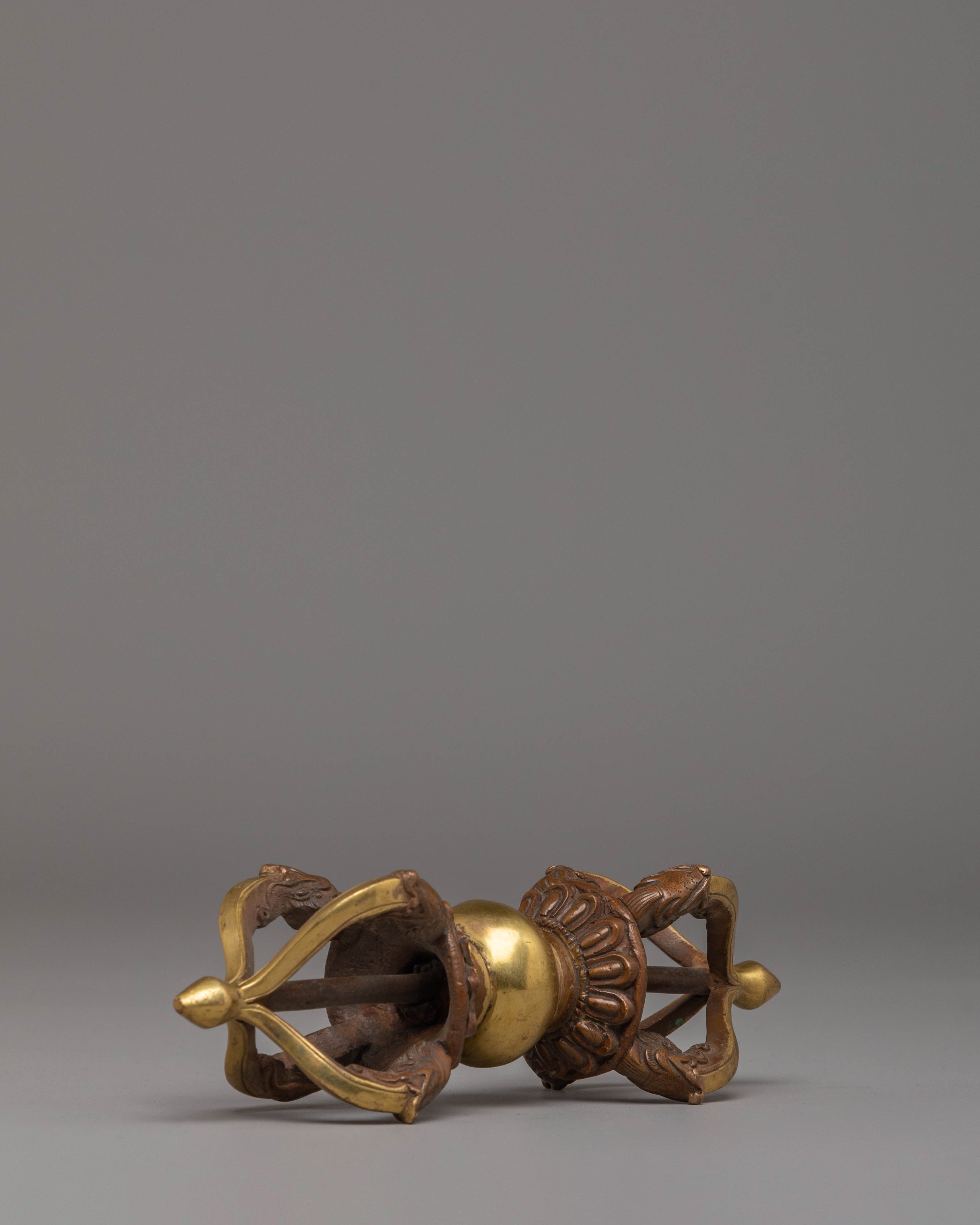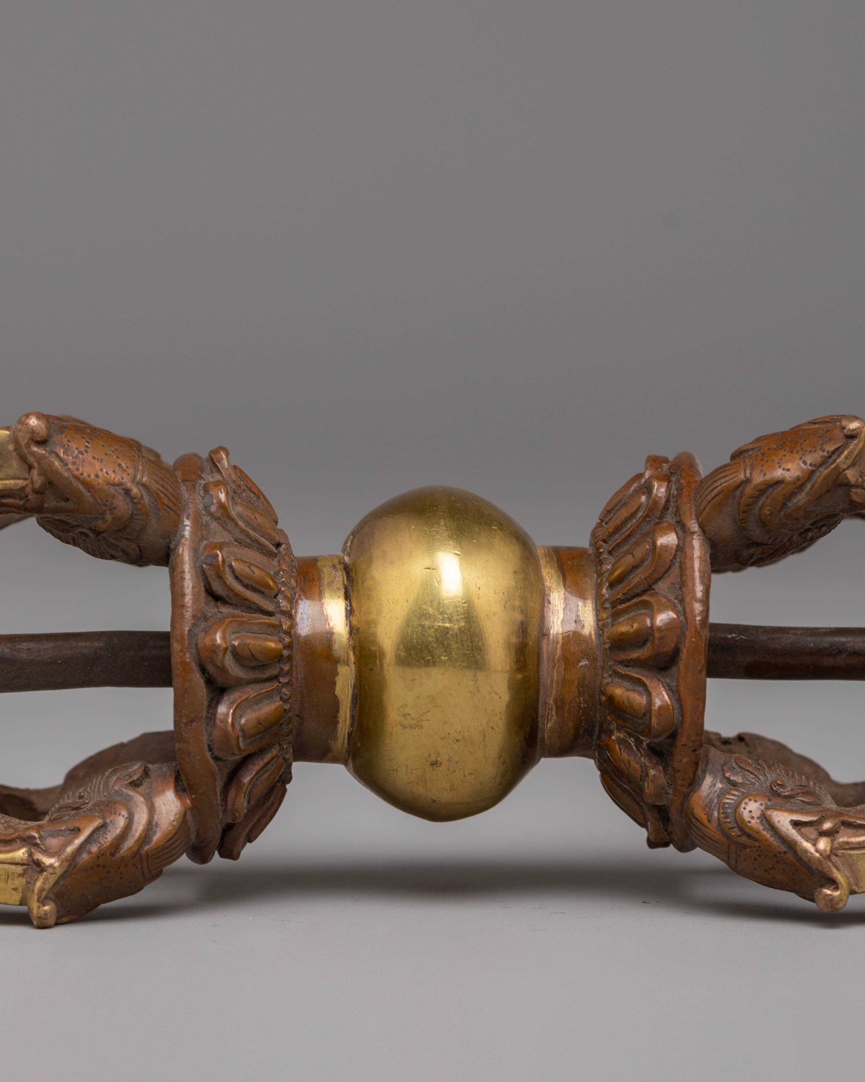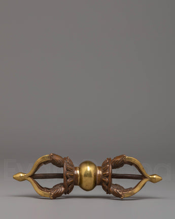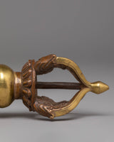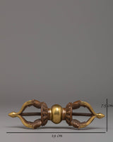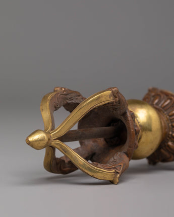 Handcrafted Fire Gold Vajra with Oxidized Copper Body for Ritual Use
