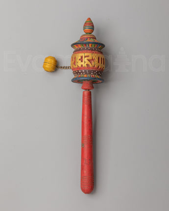 Handmade Wooden Buddhist Prayer Wheel | Tibetan Mantra Spinner
