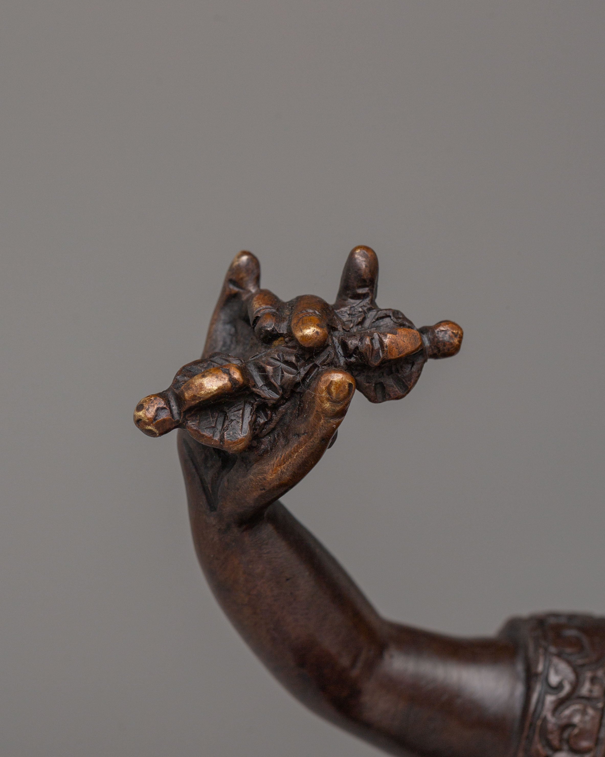 The Handmade Karmapa Tibetan Buddhist Master Statue is a masterfully crafted piece that brings the Karmapa's wisdom and compassion to your spiritual practice. Standing at 17cm tall and made from oxidized copper, this statue is a powerful representation of one of the most revered spiritual leaders in Tibetan Buddhism. The Karmapa, known for his profound teachings and dedication to the Buddhist path, is depicted with intricate details that capture both his serene and authoritative presence. This handcrafted statue serves as a potent reminder of spiritual growth, wisdom, and the deep compassion needed to navigate life’s challenges.
