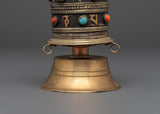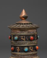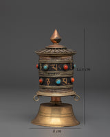 Sacred Prayer Wheel with Gemstones | Brass Turquoise Buddhist Wheel