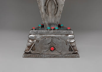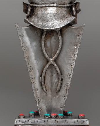 Ideal for collectors, spiritual seekers, and those interested in Tibetan culture, this phurba is more than just a decorative piece; it is a tool for meditation, ritual practice, and energy work. Displayed prominently, it commands attention and reverence, serving as a focal point for spiritual reflection and protection. Whether incorporated into your personal altar or displayed as a cultural artifact, the Sacred Traditional Tibetan Phurba offers both aesthetic beauty and profound spiritual significance. It is an exceptional addition for anyone seeking to deepen their practice, enhance their space with sacred energy, or simply appreciate the artistry of Tibetan metalwork.