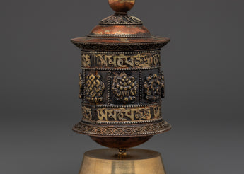 Perfect for Buddhist practitioners, collectors, and meditation enthusiasts, this Himalayan Prayer Wheel enhances mindfulness and spiritual focus while beautifying your sacred space. Discover the divine symbolism of the Eight Auspicious Symbols and experience how this handcrafted Buddhist Prayer Wheel brings peace, positive energy, and cultural richness to your home decor.