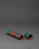 Enhance meditation and spiritual activities with our Auspicious Symbol Incense Holder - Handcrafted Tibetan Brass Burner. This incense holder, made of brass with copper accents, is artistically fashioned with auspicious symbols representing blessings, protection, and spiritual harmony. The colorful artificial stones of coral and turquoise lend a sense of traditional Himalayan style. This incense holder is stylish and useful, measuring 22cm high and 3.5cm wide and weighing 0.16 kilogram. It emits peaceful scents and represents good fortune and positive energy, making it ideal for meditation, yoga, spiritual ceremonies, and mindfulness practices. Its small size and intricate craftsmanship make it a perfect complement to any altar, yoga area, or home decor collection.