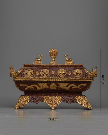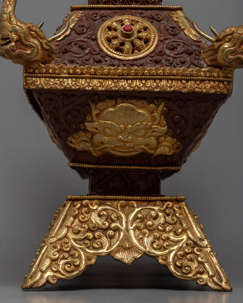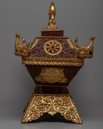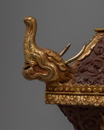 The exquisite sheen of 24k gold plating accentuates the beauty of copper, which is brought to life by the painstaking handcrafting process. This combination guarantees quality and longevity in addition to producing an aesthetically magnificent piece. This incense burner set is a distinguished accent to any space thanks to the gold plating,