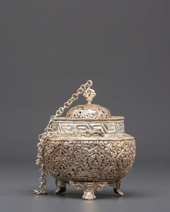 Tibetan Copper Silver Plated- Incense Burner | Perfect for Meditation & Yoga