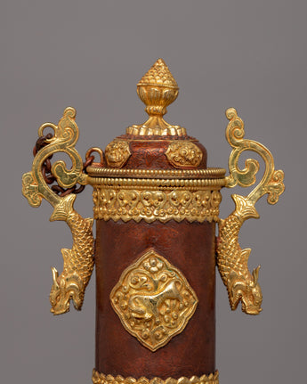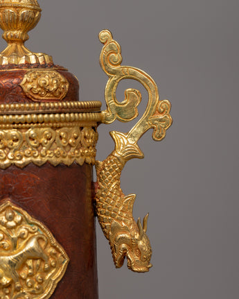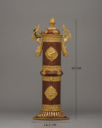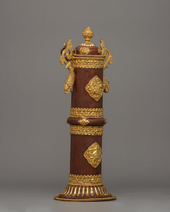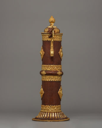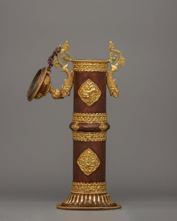Our gold-plated incense holder weighs 1.15 kg and is 36 cm in height by 14.5 cm in width. This incense holder is a beautiful and useful addition to your Buddhist altar or meditation area. It is made from an oxidized copper body and is plated in gold. A crucial component of Buddhist ceremonies, incense is utilized to enhance the spiritual atmosphere and purify the area. It is an effective instrument to improve your practice because of the rich gold plating, which represents purity and refinement.