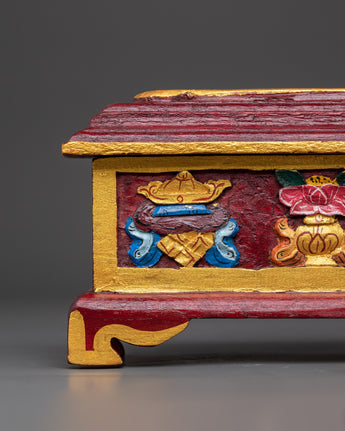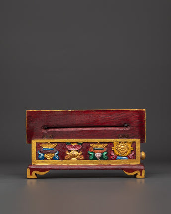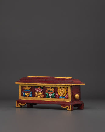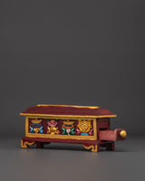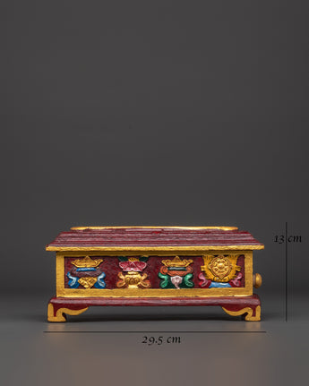 This exquisitely Handcarved Buddhist ritual incense burner will provide peace and spiritual energy to your meditation or ritual area. This Handcarved Incense Holder, which measures 13 cm in height and 29.5 cm in width, is crafted from wood using traditional workmanship and is the perfect focal point for altars, shrines, or mindfulness areas. Its long shape provides ample room for burning stick or cone incense, allowing soothing scents to permeate your room and supporting your meditation or spiritual focus.