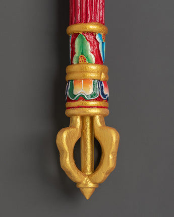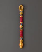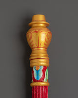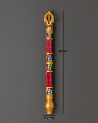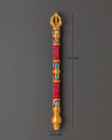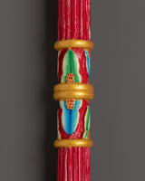 This handcrafted Tibetan incense holder perfectly captures the essence of traditional Buddhist rites. Its thick wood base, adorned with brilliant acrylic hues, is ideal for establishing a peaceful and spiritual environment. This incense holder is a representation of Tibetan craftsmanship and would look great on your home altar, meditation room, or as a unique piece of cultural decor. It is 60cm tall and 6.5cm wide, making it a dramatic yet essential addition to your home.