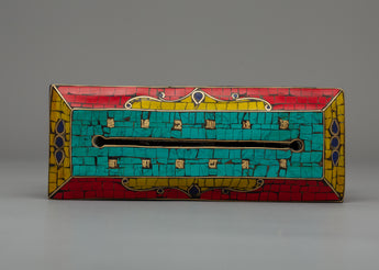 This handcrafted hardwood incense burner, 9 cm tall and 18 cm wide, is a lovely and practical addition to any spiritual area. Designed to accommodate your favorite incense sticks, it enhances the aroma and ambiance of your meditation room, altar, or sacred space. This burner is a one-of-a-kind piece of art, thanks to its intricate wooden craftsmanship and vibrant acrylic color pattern.