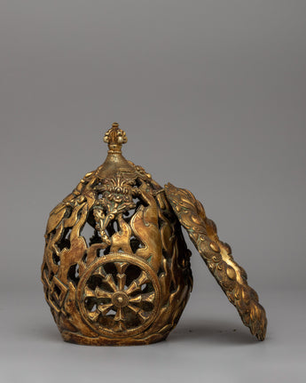 Religious Gold-plated incense Burner for Shrine | Dharma Decor