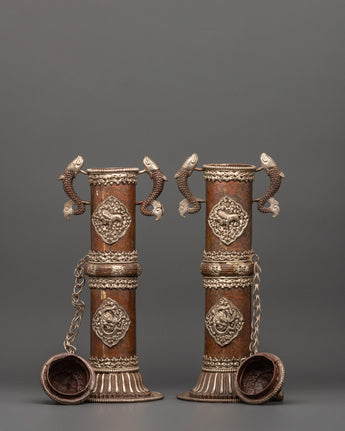 Buddhist Traditional Copper Incense Burner Set | Religious Altar Decor