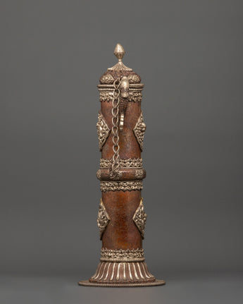 This set of copper and silver polished incense burners is an excellent choice for anyone looking to elevate their spiritual rituals. During rituals, the incense holder's design helps the practitioner focus and achieve inner serenity by invoking the harmony of the five elements: earth, water, fire, air, and space. In Tibetan Buddhist rituals and ceremonies, these incense burners serve a practical purpose and have symbolic value, enhancing spiritual practice by purifying the space and creating a sense of calm and tranquility.