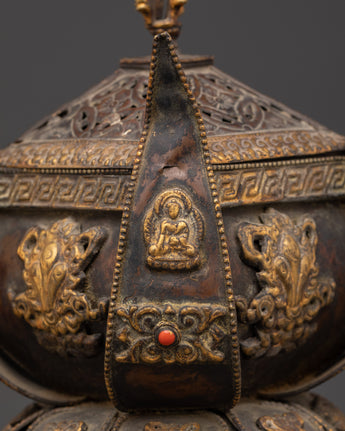 Tibetan Incense Burner with prayer wheel | Buddhist Ritual