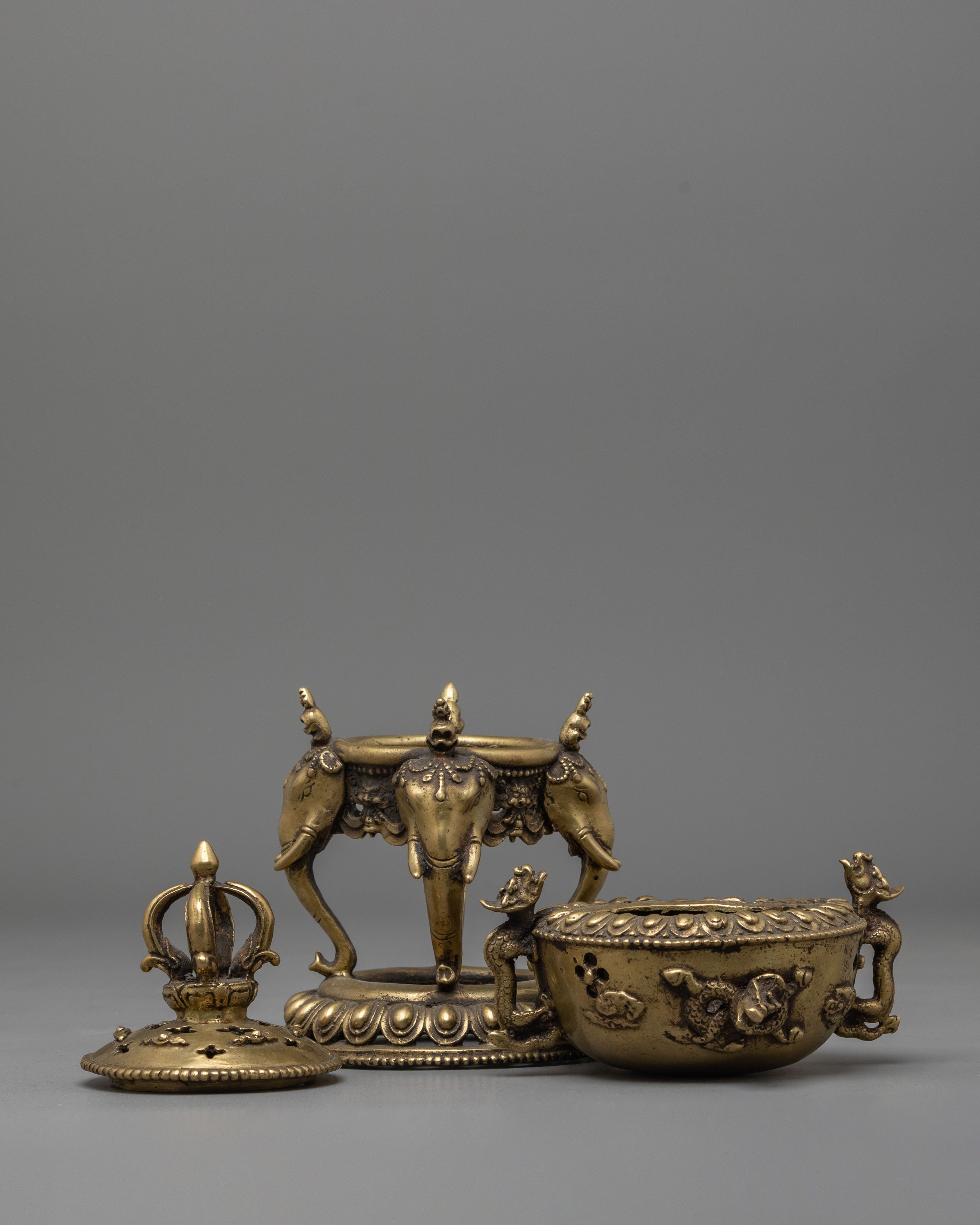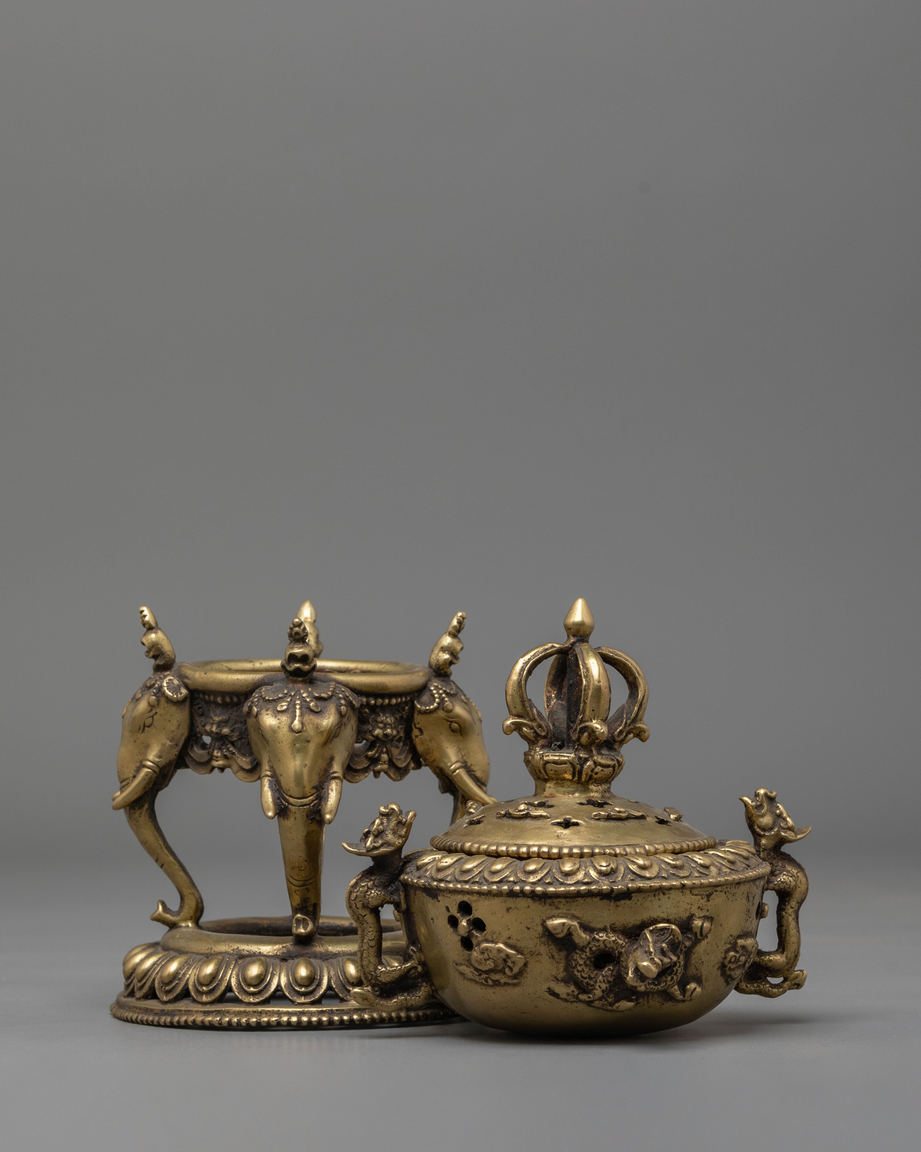 Incense Burner with Stand for Practice | Brass Burner with Elephant Base