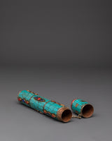 The incense burner is an essential part of Buddhist rituals, representing the purification of body, mind, and spirit. When incense is lit, the gentle smoke rising from this Tibetan burner signifies prayers ascending to higher realms, inviting peace and positive energy. The artisans of the Himalayas craft each detail with devotion, etching sacred motifs and mantras into the surface. The combination of copper and brass not only enhances the visual beauty but also embodies the spiritual union of earth and spirit.