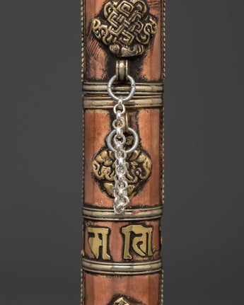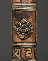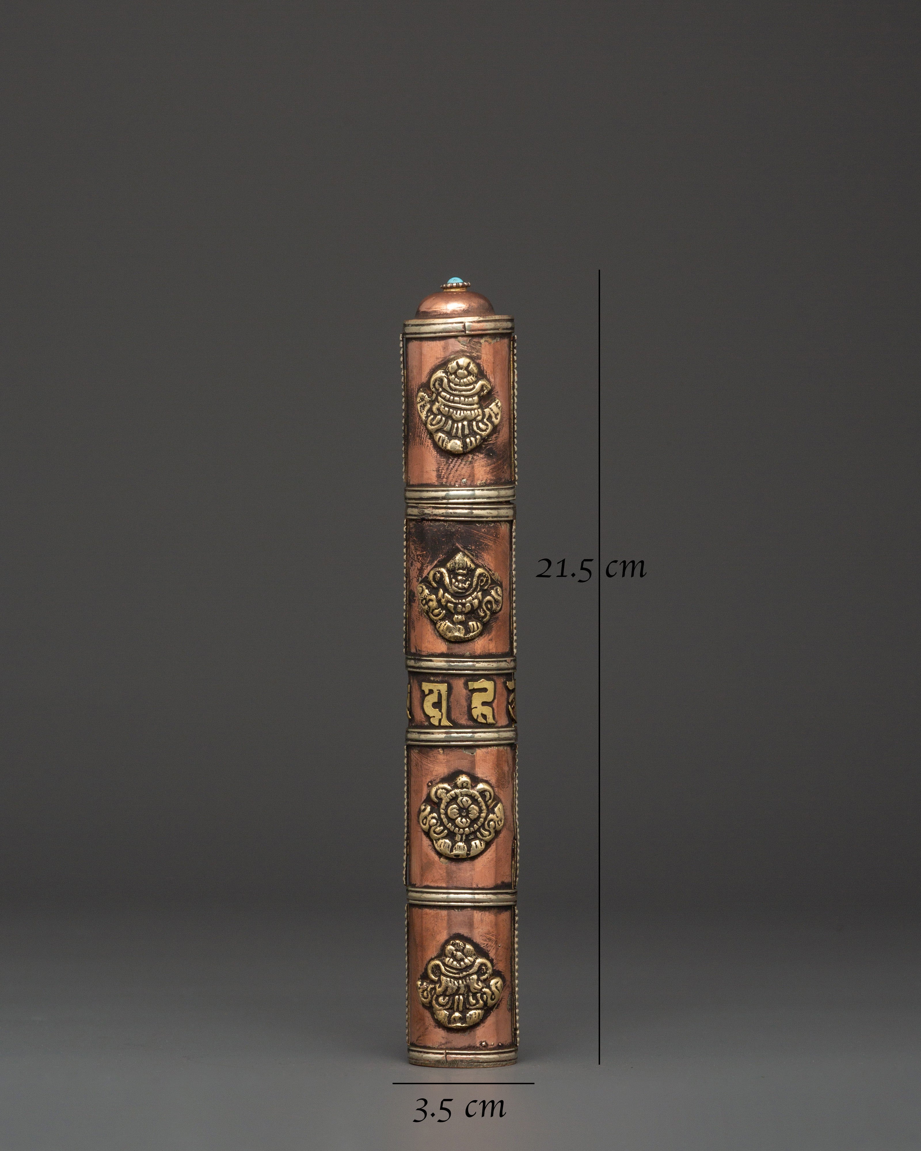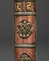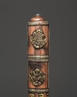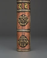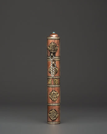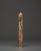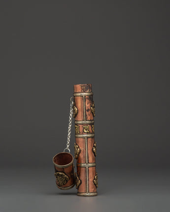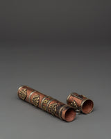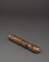 The Portable Incense Holder Case is a wonderfully constructed object that serves both a functional and spiritual purpose. This holder, measuring 21.5 cm in height and 3.5 cm in breadth, is made of copper and brass and has a traditional Tibetan appearance. It weighs only 0.14 kg and is lightweight, making it an excellent item for travel, meditation, and spiritual rituals. The cylindrical shape and brass details capture the essence of Tibetan artistry, while the tight cap keeps incense sticks safe when on the road.