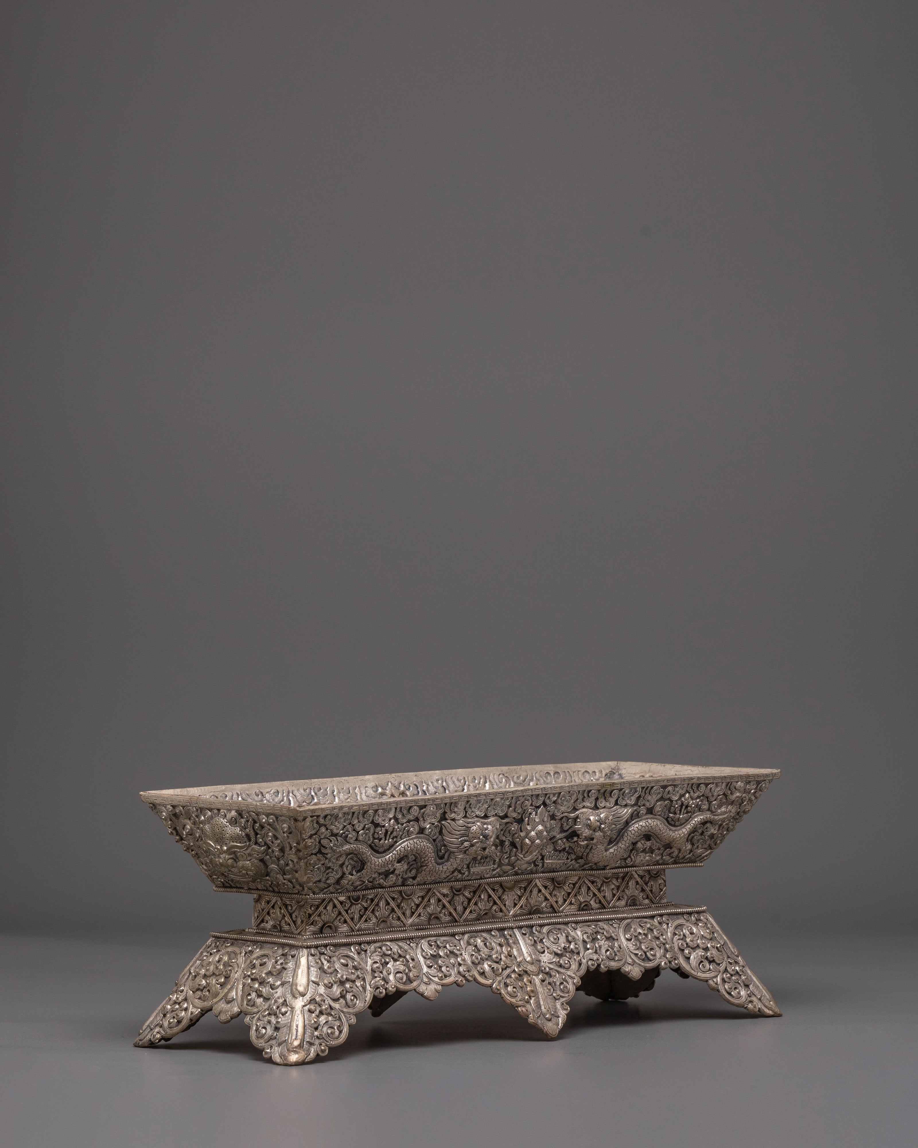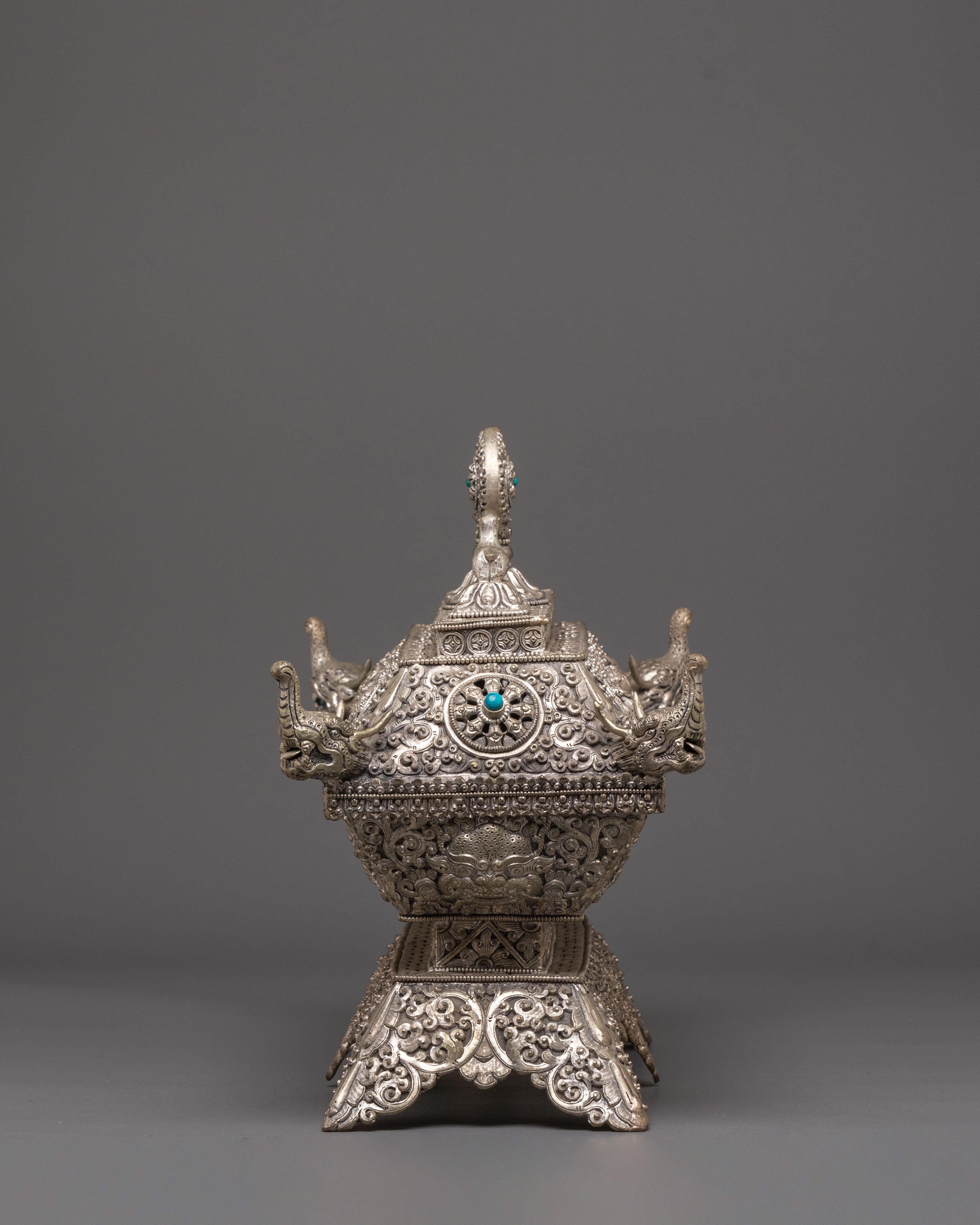 Silver Plated Tibetan Incense Burner for Ritual and Meditation
