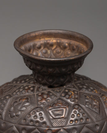 This Tortoise Incense Burner, handmade from brass with an antique finish, adds a lovely fusion of symbolism and practicality to any household. This traditional incense burner, which measures 14cm in height and 17cm in breadth and weighs 0.39kg, contains a turtle body that represents longevity and stability, as well as a removable top for convenience of use. The upper chamber is excellent for burning traditional Tibetan incense, with aromatic smoke escaping via precise holes.
