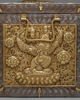 This handcrafted Tibetan treasure box is a stunning piece of spiritual artistry, designed to protect and store your most precious relics and sacred items. Crafted from copper and beautifully plated with electro-silver and gold, this treasure box radiates divine energy and elegance. Its intricate design features traditional Tibetan motifs, making it not only a functional storage solution but also a beautiful decorative piece for your altar or meditation space.