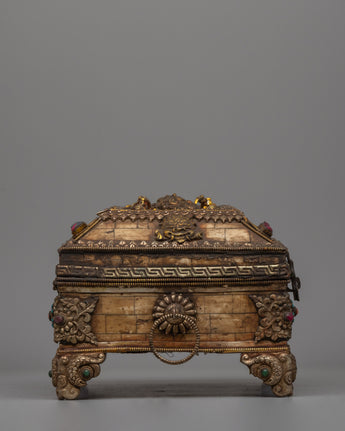 Tibetan Buffalo Bone Treasure Box | Sacred Artifact Storage
