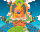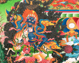 Our thangka is a handpainted Tibetan art done using traditional methods. It is a unique piece created using genuine 24K gold and natural stone colors.