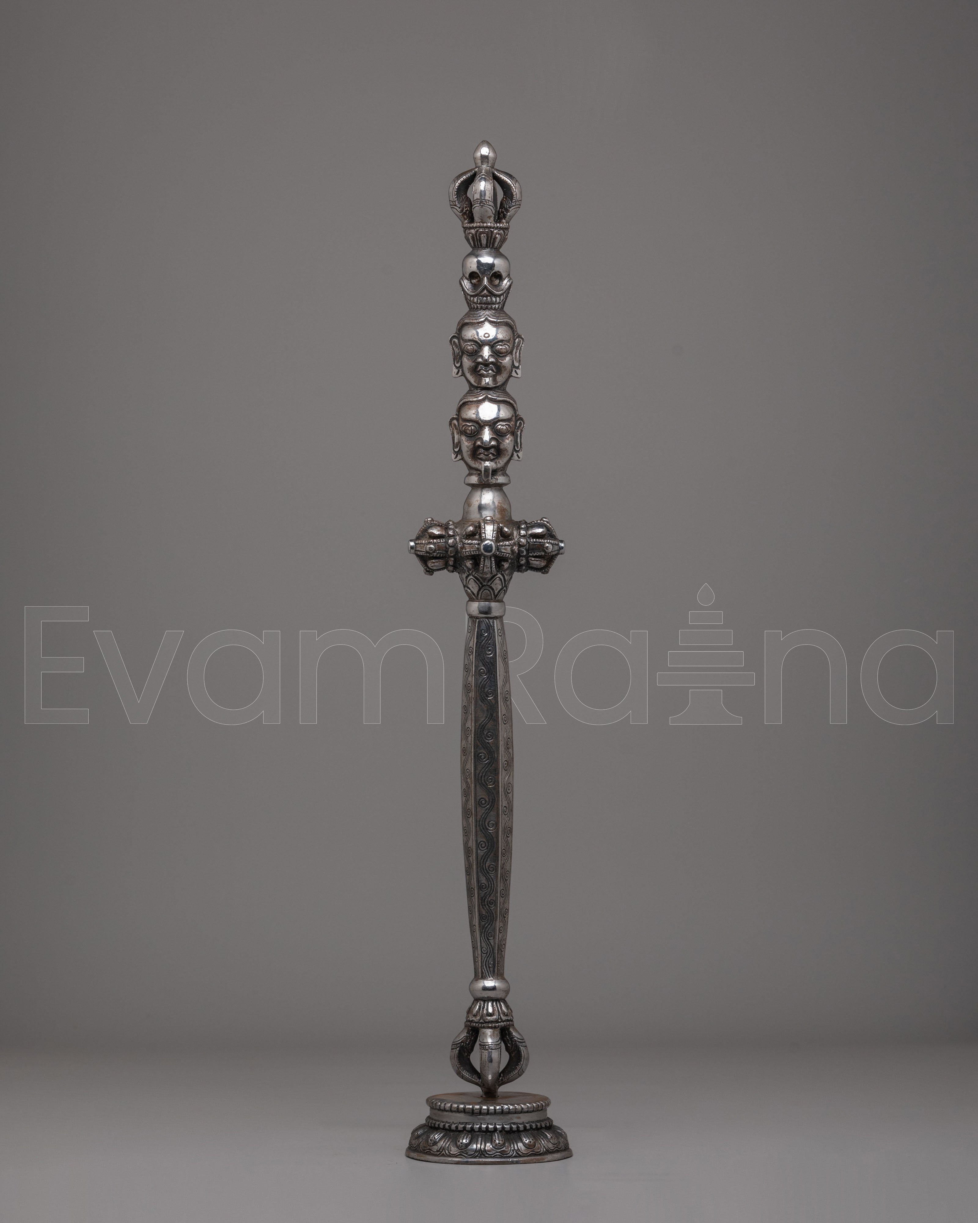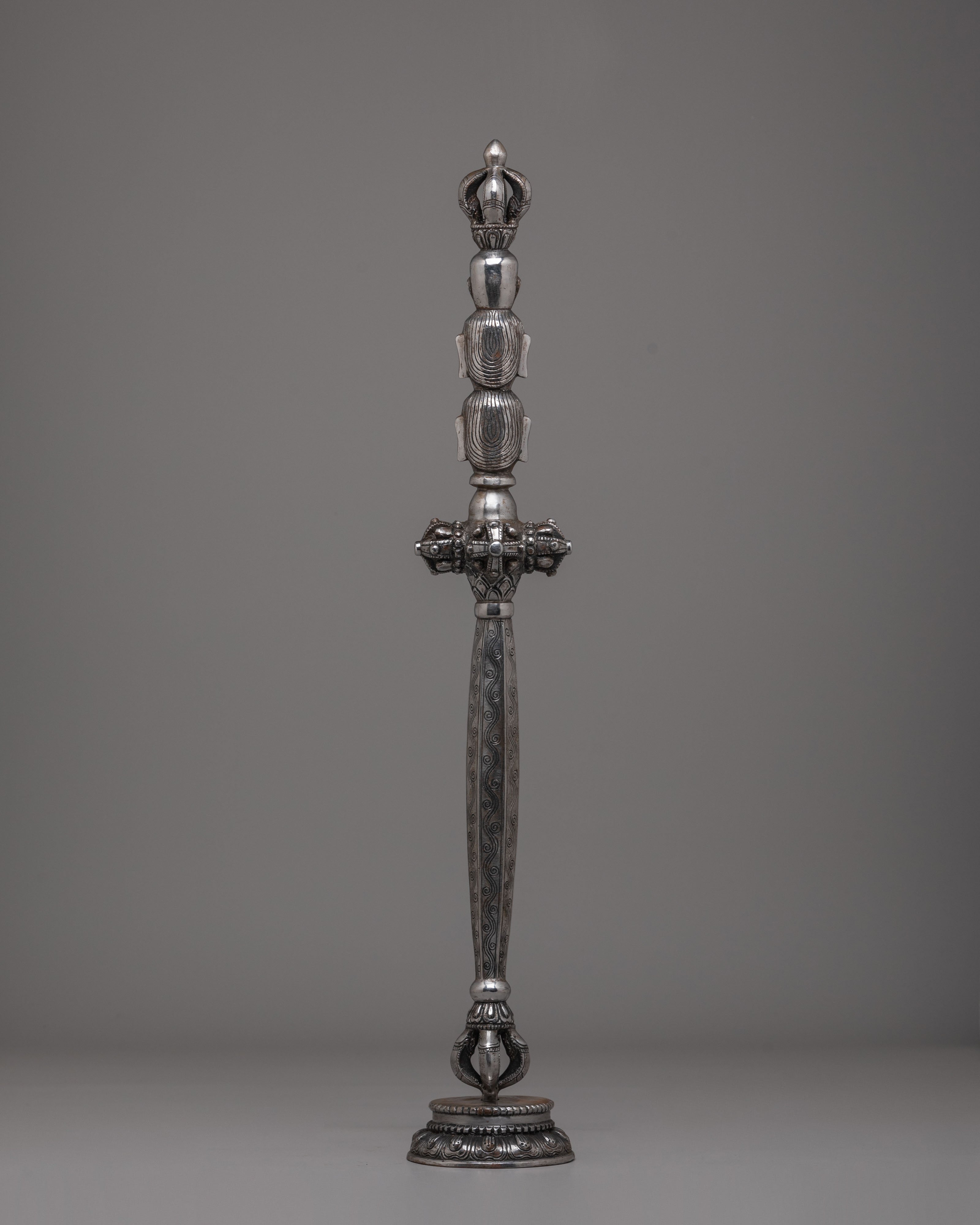 The Handcrafted Tibetan Khatvanga Ritual Tool serves as both a spiritual tool and a revered artifact. Whether used in rituals, meditative practices, or displayed as a sacred object, this khatvanga connects its holder to the powerful energies of Tibetan Buddhist tradition. Its iron material and craftsmanship make it a durable and spiritually potent item for those seeking deeper engagement with Tibetan Buddhism. This ritual tool will enhance any altar or sacred space, bringing protection, spiritual insight, and the blessing of divine power.
