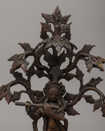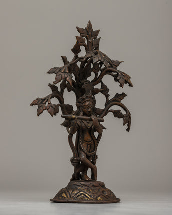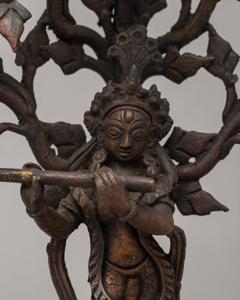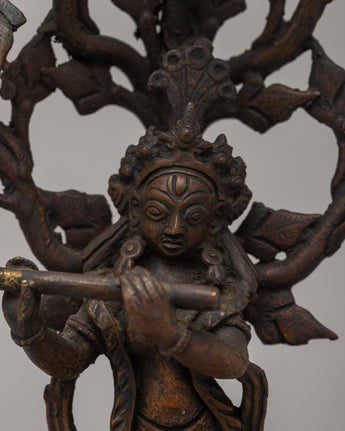Bronze Krishna Statue | Divine Deity Playing Flute, Symbol of Spiritual Melody and Bliss