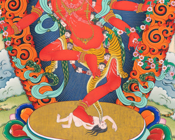 Enhance your space with our alluring Goddess of Desire, Kurukulla Canvas Thangka Print—an enchanting masterpiece that captures the essence of desire and magnetic allure. This beautifully crafted artwork on premium canvas material not only tells the empowering story of the goddess but serves as a transforming tool for intention-setting and meditation. Grace your sacred environment whether it is your meditation room or your living area, with this thangka print to welcome Kurukulla's divine energy into your life.