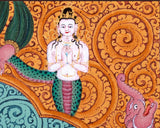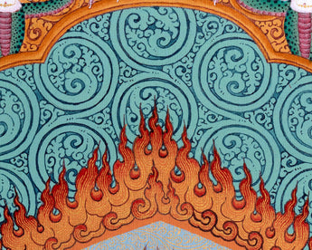 The Kurukulla Thangka print is a captivating masterpiece that seamlessly fuses spiritual artistry and exceptional craftsmanship. Skillfully rendered on a high-quality cotton mat canvas, the intricate details and vibrant colors of the Thangka are brought to life with remarkable precision. The use of giclée printing technology ensures a level of quality that captures every nuance and subtlety, enhancing the visual experience and allowing the divine imagery of Kurukulla to radiate with unparalleled clarity. This print not only serves as a visual delight but also as a profound spiritual symbol, inviting viewers to immerse themselves in the profound teachings and mystical aura of Kurukulla. Whether displayed as a centerpiece in a sacred space or as an objet d'art in a modern setting, the Kurukulla Thangka print in high-quality cotton mat canvas and giclée presents an exquisite blend of tradition and innovation, a testament to the enduring allure of Buddhist art.