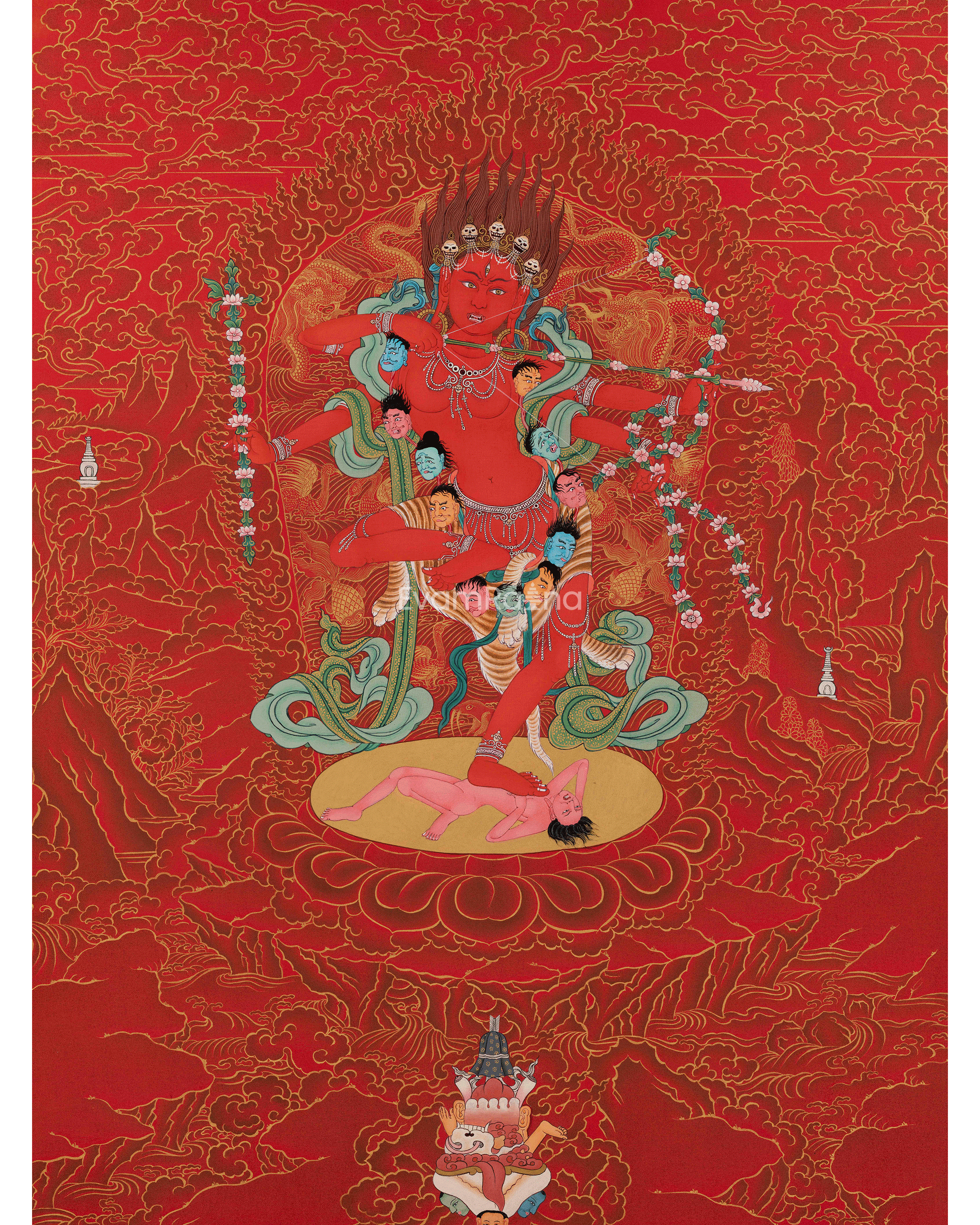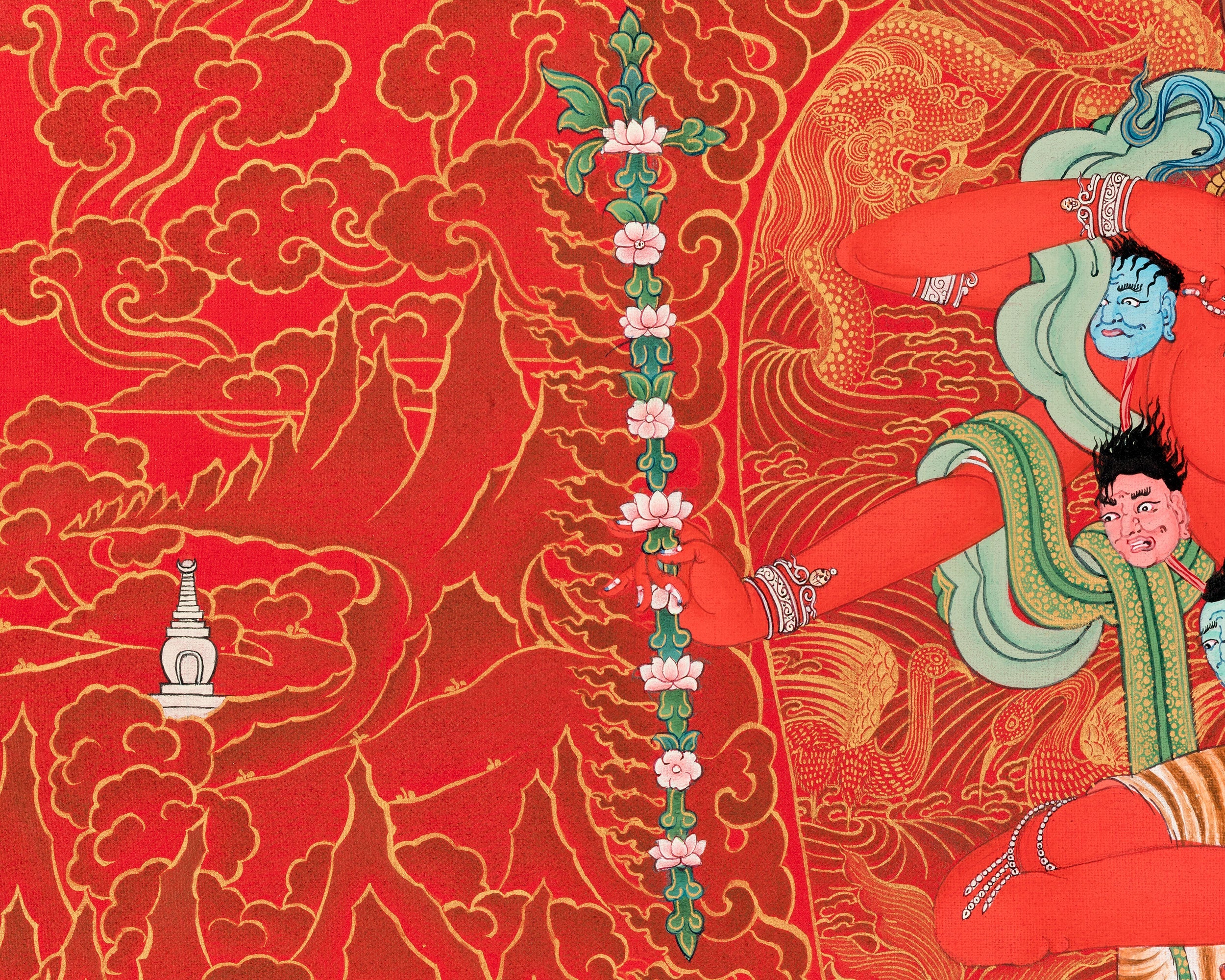 A Kurukulla print is a high-quality thangka reproduction that preserves the brilliance of the original hand-painted masterpiece. It lets practitioners and collectors experience the same spiritual presence, symbolism, and intricate detail of traditional Buddhist thangkas in an accessible and versatile form. This reproduction features the rich colors, delicate patterns, and sacred geometry of the original, making it suitable for both devotional practices and elegant home decor. Available in your preferred size, it acts as a powerful link between ancient artistry and modern spiritual spaces.