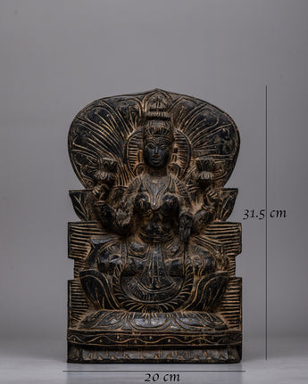 Introducing our stunning handmade Brass Laxmi Statue, which symbolizes the pure essence of the goddess of wealth and prosperity, Laxmi. This vintage statue is crafted of brass and weighs 0.416 kg. It is extremely high at 31.5 cm and wide at 20 cm. The statue's fine details, including Laxmi's peaceful embrace and the exquisite trappings that symbolize its divine elegance and abundance, can be brought into existence through exquisite craftsmanship.